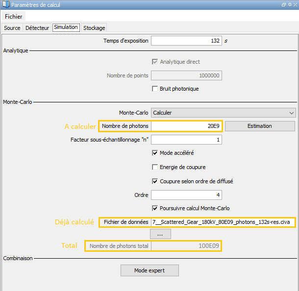 Par exemple, si votre calcul initial contient 80E09 photons et que vous souhaitez en modéliser 100E09, vous n’aurez qu’à calculer 20E09 photons.