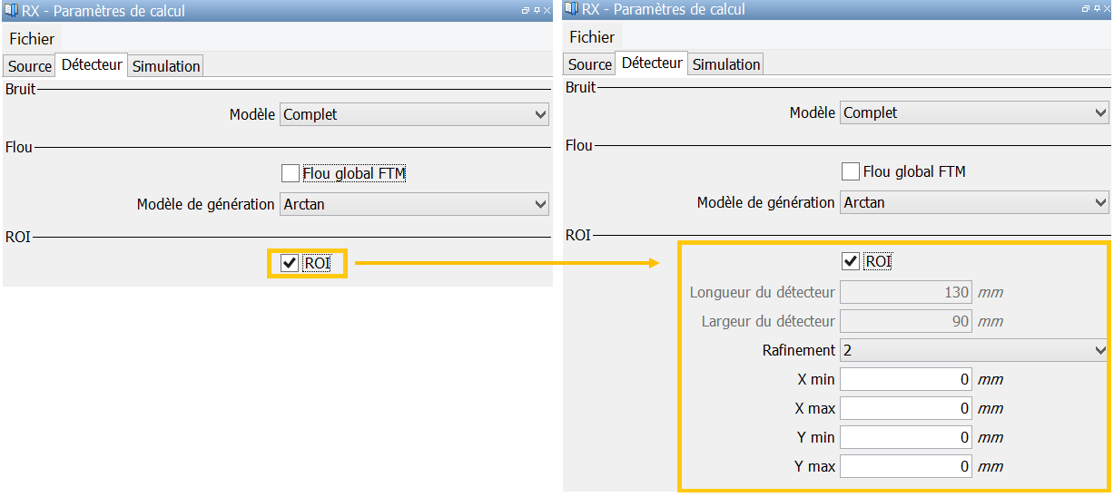 Pour la définir, cocher l’option “ROI”, disponible dans le menu Option (onglet Détecteur).