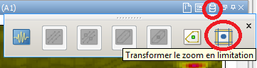 Après avoir zoomé dans une vue non reconstruite (A-scan, B-scan, C-scan, courbe échodynamique…), le bouton magique “Transformer le zoom en limitation” est disponible parmi les outils “Données”.