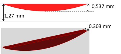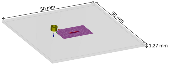 La pièce contient une entaille elliptique débouchante en surface, non-traversante, comme schématisé sur la figure ci-dessous.