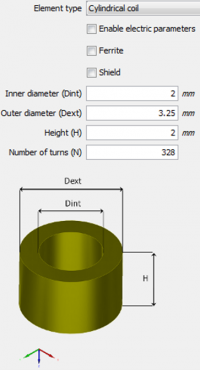 La sonde est constituée d’une bobine cylindrique à double fonction dont les propriétés géométriques sont rassemblées sur la figure ci-dessous représentant le panneau dans CIVA qui permet de définir ces propriétés. L’acquisition se fait à une fréquence de 100 kHz, avec 100 mA d’injection et réception en mode absolu.