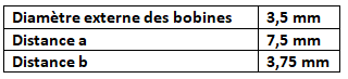 Les paramètres géométriques de la sonde sont rassemblés dans le tableau ci-dessous, a et b étant les distances entre les rangées de bobines comme montré sur la figure ci-dessous :