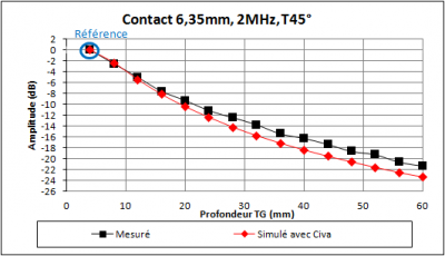 Les résultats sont étalonnés par rapport au TG de Ø2 mm SDH à 4 mm de profondeur.