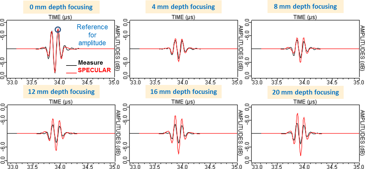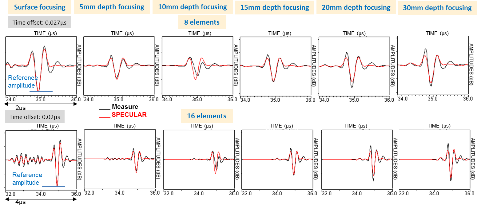 Here below are represented Ascan comparisons between specular model and measured results.