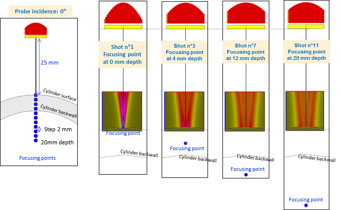 UT – Surface Echoes: Focal laws in different points