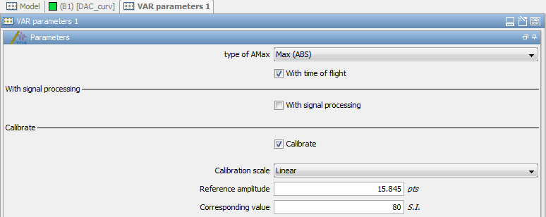 It is possible to calibrate the curve according to a reference chosen by the user in order to display it in dB or %. To do so, in the CIVA manager, right-click on the result and edit the variation parameters.