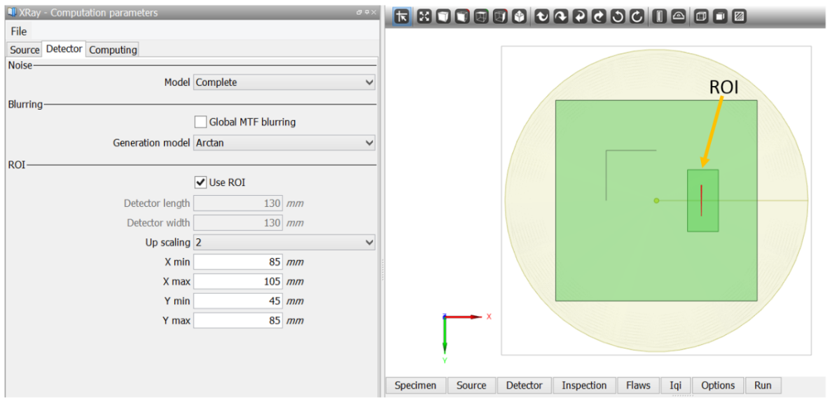 The ROI appears on the detector in the 3D view.